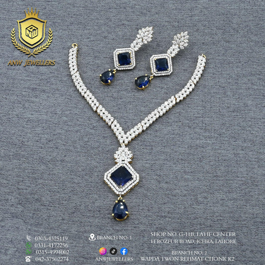 22K Gold Square Cut Blue Stone Bridal Necklace Set