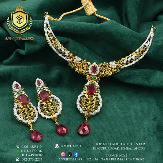 22K Gold Ruby & Emerald Bridal Necklace Set